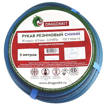 Рукав газовый Dragonkit 9,0 мм., синий, 5 м., 3 класс