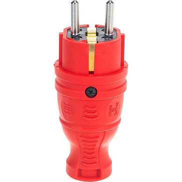 Вилка прямая Эра V8-RED-IP44 (каучуковая, с заземлением, прямая, 16 A, IP44, красная) Б0044547