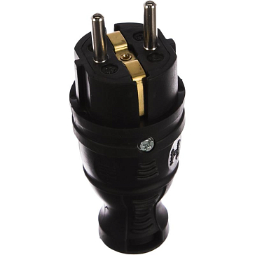 Вилка прямая Эра V8-B-IP44 (каучуковая, с заземлением, 16 A, IP44, черная) Б0044540