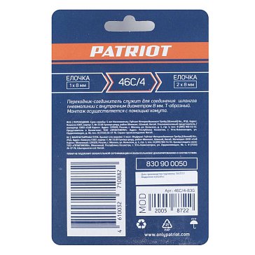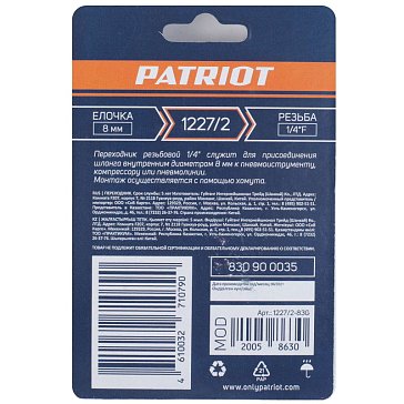К бренду Интернет-магазин «Бигам» предлагает купить пневмопровод Patriot в городе Москва по цене от 147 до 347 рублей. В наличии более 7 наименований. Купить пневмопровод от производителя Patriot можно с доставкой в Москве on-line на сайте или заказать по номеру телефона 8 (495) 152-56-79. Условия доставки Патриот в другие населенные пункты и регионы России уточняйте у менеджеров.