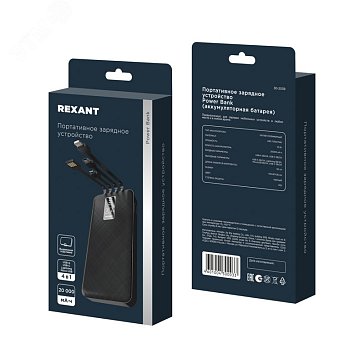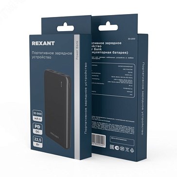Устройство портативное зарядное Rexant Power Bank 30-2051 (аккумуляторная батарея) 10000 mAh, с Quick Charge и Power Delivery, черный