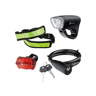 Набор велосипедный : передний и задний фонари Led, светоотражатель и тросовый замок Stern