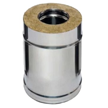 - Сэндвич выполнен из нержавеющей стали AISI 439 толщиной 0,8 мм, поэтому подходит для установки на начальных участках дымохода, где температура отработанных газов выше