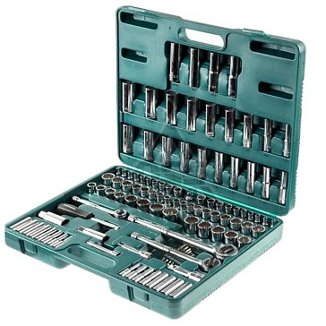 В комплекте1/2’’ DR: Торцевые головки: 14, 15, 16, 17, 18, 19, 20, 22, 24, 27, 30, 32 мм12 шт. 1/2’’ DR: Трещотка с быстрым сбросом 48 зубцов1 шт. 1/2’’ DR: Удлинители 125 и 250 мм2 шт. 1/2’’ DR: Торцевые головки свечные 16 и 21 мм2 шт. 1/2’’ DR: Адаптер для удлинителя под вороток 3/8"(F)х1/2" (М)1 шт. 1/2’’ DR: Держатель для бит 1/2" DR х 5/16"1 шт. 1/2’’ DR: Биты 5/16" (30 мм) шестигранные: 8,10, 12, 14 мм, шлиц: 8,10,12 мм, Phillips: РН3, РН4, Pozi: PZ3, PZ415 шт. 1/2’’ DR: Карданный шарнир1 шт. 1/4’’ DR: Торцевые головки: 4, 4.5, 5, 5.5, 6, 7, 8, 9, 10, 11, 12, 13, 14 мм13 шт. 1/4’’ DR: Трещотка с быстрым сбросом 48 зубцов1 шт. /4’’ DR: Головки со вставками Нех: 3, 4, 5, 6 мм, Torx: Т8, Т10, Т15, Т20, Т25, Т30, шлиц: 4.5, 5.7 мм, Phillips: РН1, РН2, Pozi: PZ1, PZ217 шт. 1/4’’ DR: Т-образная рукоятка1 шт. 1/4’’ DR: Удлинители 50, 100 мм2 шт. 1/4’’ DR: Карданный шарнир1 шт. 1/4’’ DR: Гибкий привод1 шт. 1/4’’ DR: Отверточная рукоятка1 шт. 1/4’’ DR: Переходник для бит1 шт. 1/4’’ DR: Комбинированные ключи: 8, 10, 12, 13, 14, 17, 19, 22 мм9 шт. Кейс1 шт. Рейтинги и отзывы