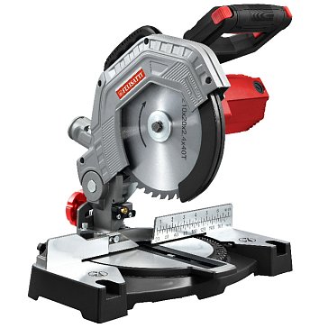 - Фиксирующийся в любом положении поворотный стол и удобная регулировка наклона облегчают установку угла пиления