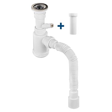 - Сифон Зубр "МАСТЕР" 51867-2 (колбовый для двухместной мойки, выпуск - нержавеющая чашка, перелив, отвод для стиральной машины) обеспечит надежный слив воды в канализацию. Используется для слива воды из ванны в сточные трубы, а также служат в качестве водяного затвора для предотвращения проникновения неприятных запахов из канализации.