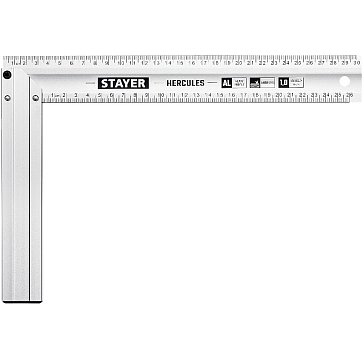 - Угольник Stayer 34342-60 предназначен для разметки и проверки прямых углов обрабатываемых заготовок и собираемых изделий, контроля перпендикулярности конструкций при слесарных и прочих строительных работах. Угольник оснащен двусторонней разметкой и штампованной шкалой. Сделан из прочного сплава.