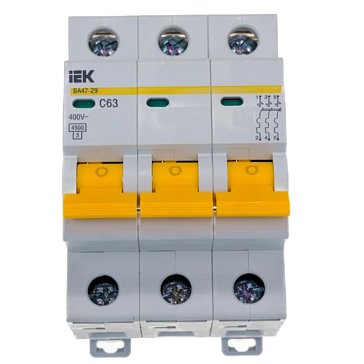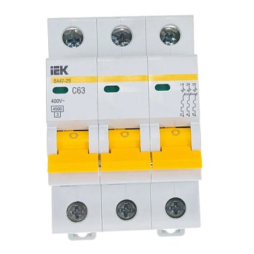 - Количество полюсов автомата: 3Отключающая способность, 4.5 кАНоминальный ток, А: 63