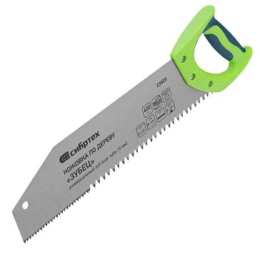 - Ножовка по дереву Сибртех "Зубец" 23822, 500 мм, шаг зуба 10 мм, зуб 2D, калёный зуб, двухкомпонентная рукояткаЗубья ножовки 2dTPI ножовки 2.5