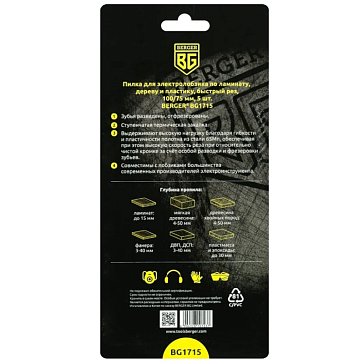 Пилка для электролобзика по дереву Berger BG1711 T101B, чистый рез (5 шт, шаг 2.5 мм, длина 100/75 мм)Назначение: для дерева, для пластика, для ДСП, для фанеры366 ₽549 ₽
