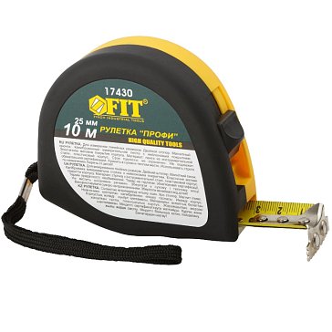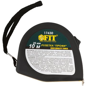 Рулетка Fit Профи 17430, калиброванная лента, нейлоновое покрытие, магнитный крючок, эластичный корпус, черно-желтая, двойной стопор, 10 м х 25 ммДлина ленты: 10 мШирина ленты: 25 мм1 207 ₽